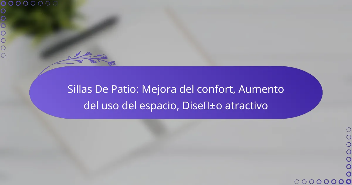 Las sillas de patio son esenciales para mejorar el confort en espacios exteriores, proporcionando un lugar cómodo para relajarse y disfrutar del aire libre. Además, su diseño versátil optimiza el…